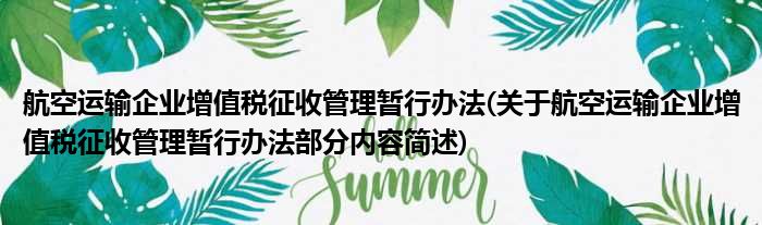 航空运输企业增值税征收管理暂行办法(关于航空运输企业增值税征收管理暂行办法部分内容简述)
