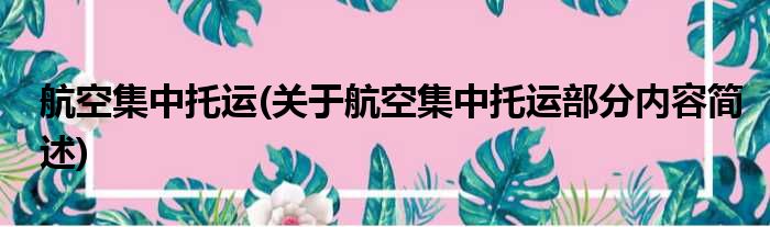 大家好,今天小方来说说一篇关于航空集中托运,关于航空集中托运部分内容简述的文章,那么现在就为大家来简单介绍下,希望对各位小伙伴们有所帮助。