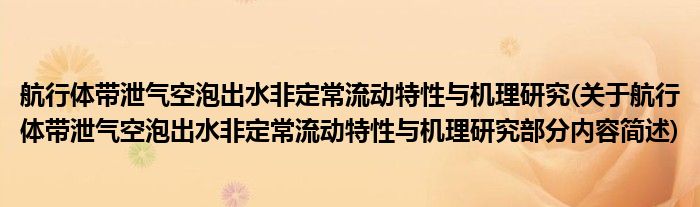 航行体带泄气空泡出水非定常流动特性与机理研究(关于航行体带泄气空泡出水非定常流动特性与机理研究部分内容简述)