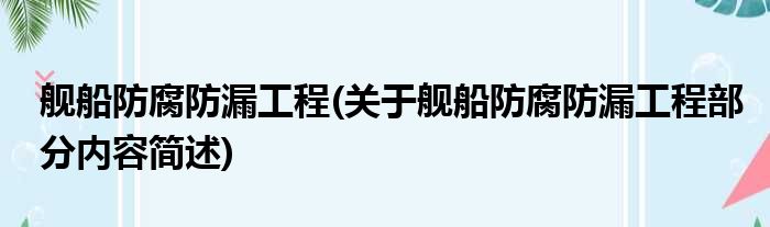 舰船防腐防漏工程(关于舰船防腐防漏工程部分内容简述)