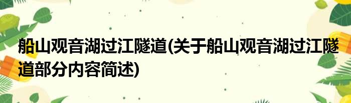 船山观音湖过江隧道(关于船山观音湖过江隧道部分内容简述)