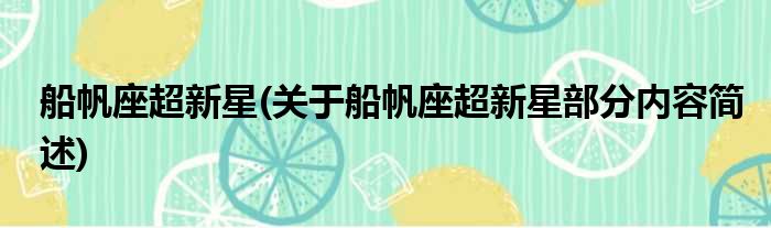 船帆座超新星(关于船帆座超新星部分内容简述)