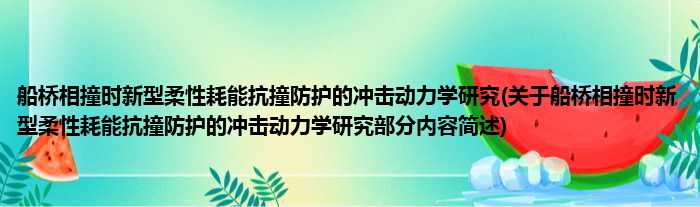 船桥相撞时新型柔性耗能抗撞防护的冲击动力学研究(关于船桥相撞时新型柔性耗能抗撞防护的冲击动力学研究部分内容简述)