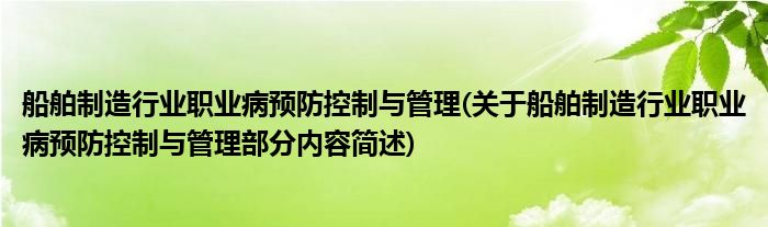 船舶制造行业职业病预防控制与管理(关于船舶制造行业职业病预防控制与管理部分内容简述)