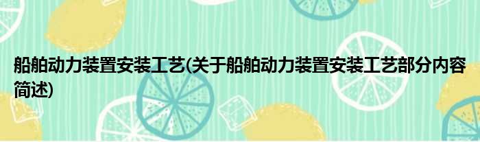 船舶动力装置安装工艺(关于船舶动力装置安装工艺部分内容简述)