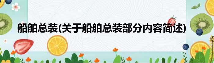 大家好,今天小方来说说一篇关于船舶总装,关于船舶总装部分内容简述的文章,那么现在就为大家来简单介绍下,希望对各位小伙伴们有所帮助。