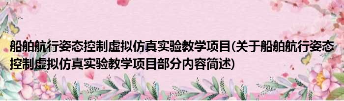 船舶航行姿态控制虚拟仿真实验教学项目(关于船舶航行姿态控制虚拟仿真实验教学项目部分内容简述)