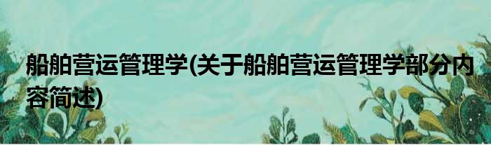 船舶营运管理学(关于船舶营运管理学部分内容简述)