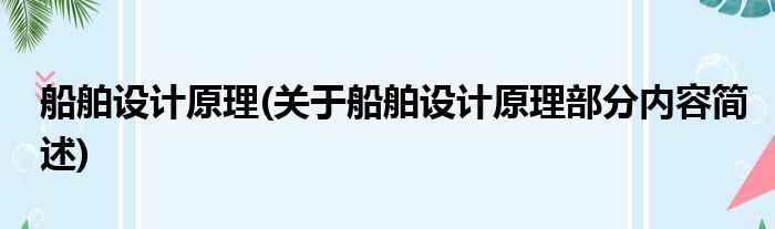 船舶设计原理(关于船舶设计原理部分内容简述)