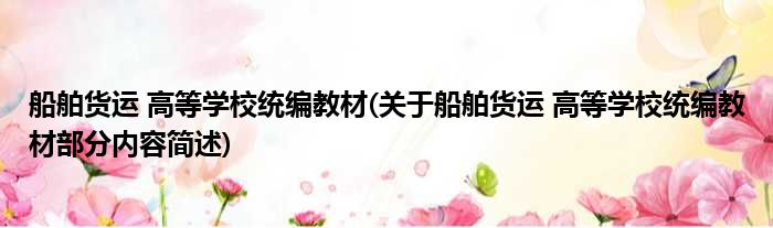 船舶货运 高等学校统编教材(关于船舶货运 高等学校统编教材部分内容简述)