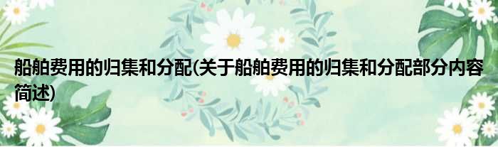 船舶费用的归集和分配(关于船舶费用的归集和分配部分内容简述)