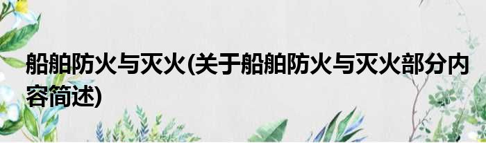 船舶防火与灭火(关于船舶防火与灭火部分内容简述)