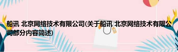 船讯 北京网络技术有限公司(关于船讯 北京网络技术有限公司部分内容简述)