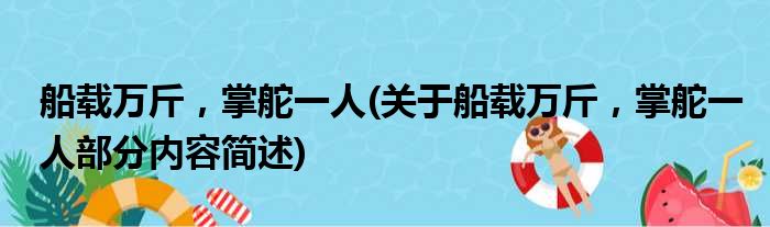 船载万斤,掌舵一人(关于船载万斤,掌舵一人部分内容简述)