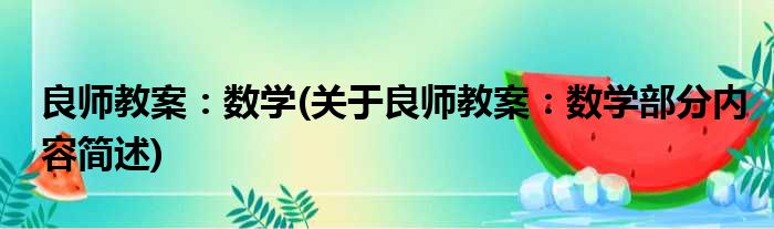 良师教案:数学(关于良师教案:数学部分内容简述)
