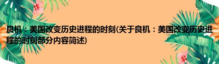 大家好,今天小方来说说一篇关于良机:美国改变历史进程的时刻,关于良机:美国改变历史进程的时刻部分内容简述的文章,那么现在就为大家来简单介绍下,希望对各位小伙伴们有所帮助。