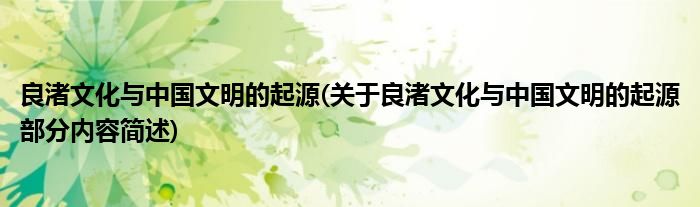 良渚文化与中国文明的起源(关于良渚文化与中国文明的起源部分内容简述)