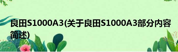 良田S1000A3(关于良田S1000A3部分内容简述)