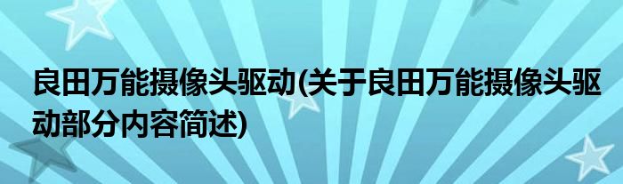 良田万能摄像头驱动(关于良田万能摄像头驱动部分内容简述)