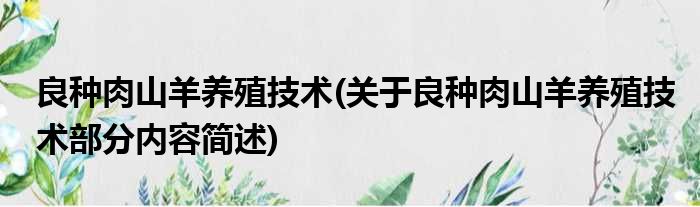 良种肉山羊养殖技术(关于良种肉山羊养殖技术部分内容简述)