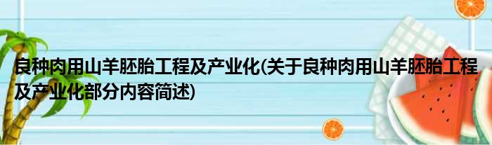 良种肉用山羊胚胎工程及产业化(关于良种肉用山羊胚胎工程及产业化部分内容简述)