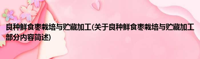 良种鲜食枣栽培与贮藏加工(关于良种鲜食枣栽培与贮藏加工部分内容简述)