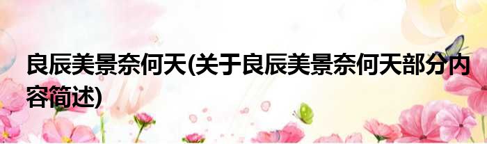 良辰美景奈何天(关于良辰美景奈何天部分内容简述)