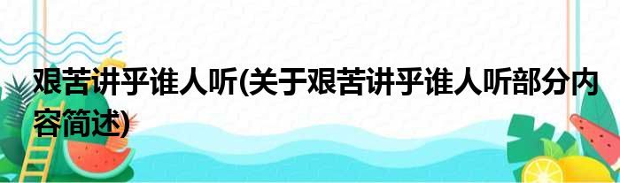 艰苦讲乎谁人听(关于艰苦讲乎谁人听部分内容简述)
