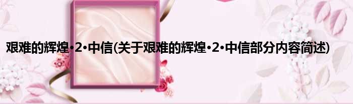 大家好,今天小方来说说一篇关于艰难的辉煌·2·中信,关于艰难的辉煌·2·中信部分内容简述的文章,那么现在就为大家来简单介绍下,希望对各位小伙伴们有所帮助。
