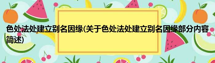 大家好,今天小方来说说一篇关于色处法处建立别名因缘,关于色处法处建立别名因缘部分内容简述的文章,那么现在就为大家来简单介绍下,希望对各位小伙伴们有所帮助。