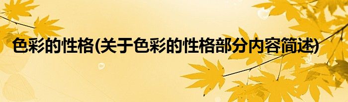 大家好,今天小方来说说一篇关于色彩的性格,关于色彩的性格部分内容简述的文章,那么现在就为大家来简单介绍下,希望对各位小伙伴们有所帮助。