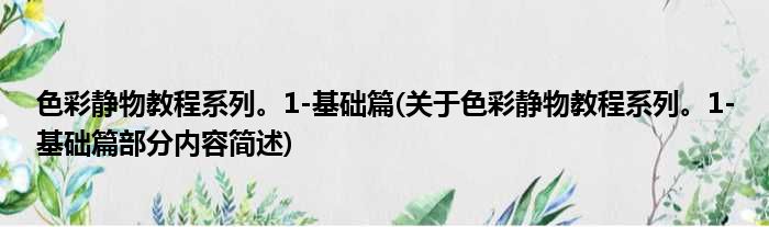 色彩静物教程系列。1-基础篇(关于色彩静物教程系列。1-基础篇部分内容简述)
