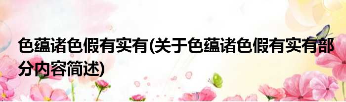 色蕴诸色假有实有(关于色蕴诸色假有实有部分内容简述)