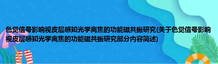 色觉信号影响视皮层感知光学离焦的功能磁共振研究(关于色觉信号影响视皮层感知光学离焦的功能磁共振研究部分内容简述)