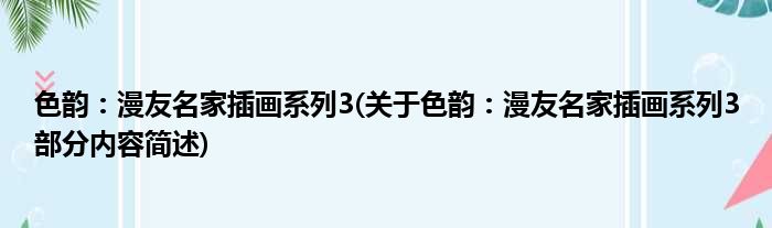 色韵:漫友名家插画系列3(关于色韵:漫友名家插画系列3部分内容简述)