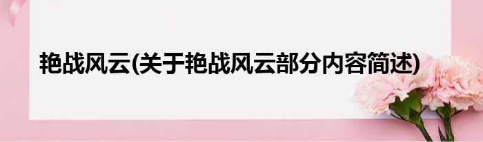 大家好,今天小方来说说一篇关于艳战风云,关于艳战风云部分内容简述的文章,那么现在就为大家来简单介绍下,希望对各位小伙伴们有所帮助。