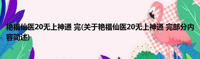 艳福仙医20无上神通 完(关于艳福仙医20无上神通 完部分内容简述)
