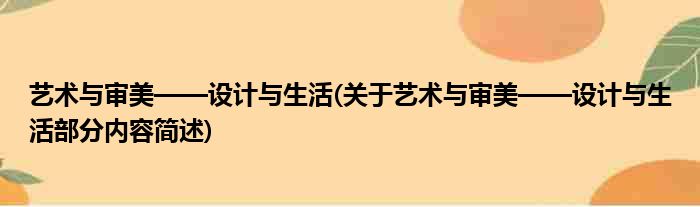 艺术与审美——设计与生活(关于艺术与审美——设计与生活部分内容简述)