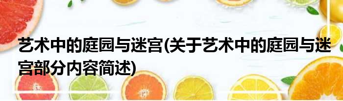 艺术中的庭园与迷宫(关于艺术中的庭园与迷宫部分内容简述)