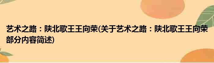 艺术之路:陕北歌王王向荣(关于艺术之路:陕北歌王王向荣部分内容简述)