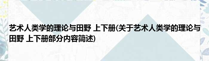 艺术人类学的理论与田野 上下册(关于艺术人类学的理论与田野 上下册部分内容简述)