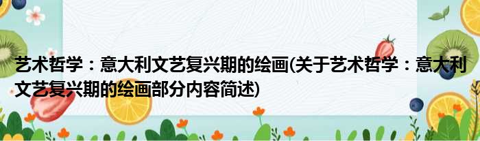 大家好,今天小方来说说一篇关于艺术哲学:意大利文艺复兴期的绘画,关于艺术哲学:意大利文艺复兴期的绘画部分内容简述的文章,那么现在就为大家来简单介绍下,希望对各位小伙伴们有所帮助。
