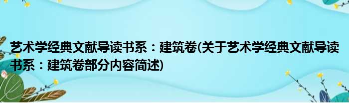 艺术学经典文献导读书系:建筑卷(关于艺术学经典文献导读书系:建筑卷部分内容简述)
