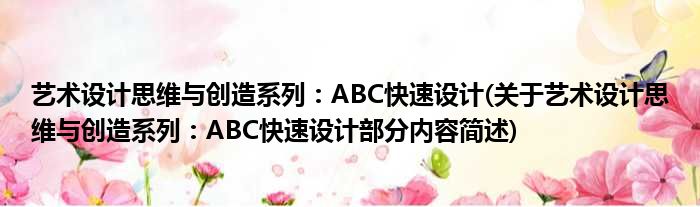 艺术设计思维与创造系列:ABC快速设计(关于艺术设计思维与创造系列:ABC快速设计部分内容简述)