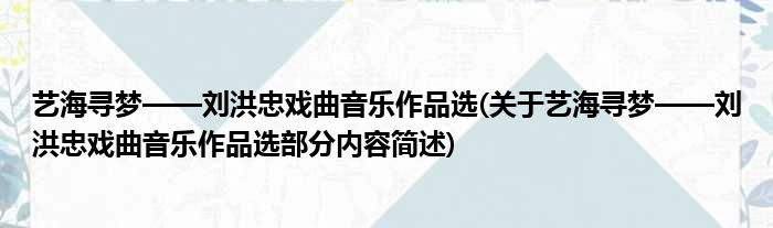 艺海寻梦——刘洪忠戏曲音乐作品选(关于艺海寻梦——刘洪忠戏曲音乐作品选部分内容简述)