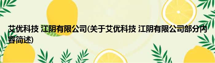 艾优科技 江阴有限公司(关于艾优科技 江阴有限公司部分内容简述)