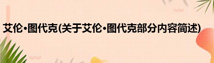 艾伦·图代克(关于艾伦·图代克部分内容简述)