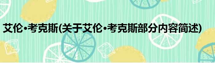 大家好,今天小方来说说一篇关于艾伦·考克斯,关于艾伦·考克斯部分内容简述的文章,那么现在就为大家来简单介绍下,希望对各位小伙伴们有所帮助。