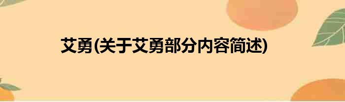 大家好,今天小方来说说一篇关于艾勇,关于艾勇部分内容简述的文章,那么现在就为大家来简单介绍下,希望对各位小伙伴们有所帮助。