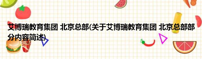 艾博瑞教育集团 北京总部(关于艾博瑞教育集团 北京总部部分内容简述)